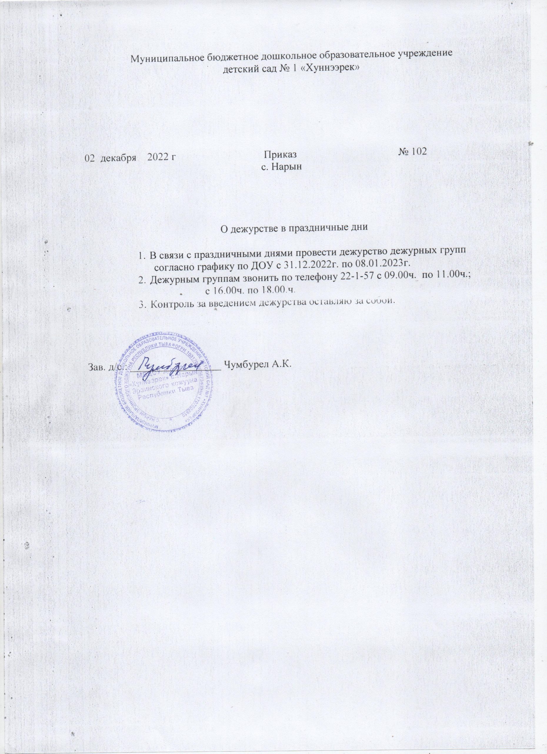 Медээлер. Новости. Чарлалдар. Приказ о дежурстве 14.12.2022 / Круглосуточные дежурства с 01 по 10 января 2023гСкачать
